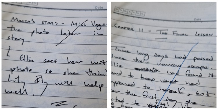 The development of the first draft was very quick as the aim was to write the full draft of the story for a birthday present.